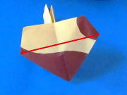 折り込んであった所を 広げて 角(赤線)を⇒ ![]() |