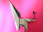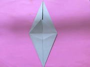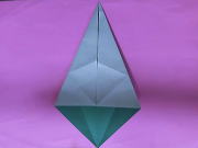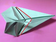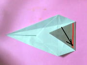 右下三角(赤線)を山折り 上の三角を引き下ろします ![]() |
