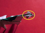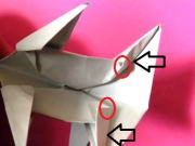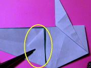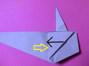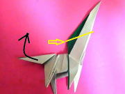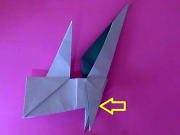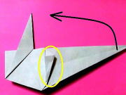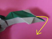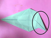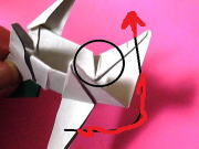 矢印の所を谷折りして 浮いている(赤〇)所を⇒ ![]() |