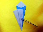 谷折りで左角を付けた 右側の折り線に⇒ ![]() |