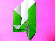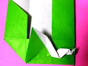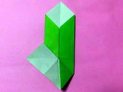 下の折り線を谷折りしながら 下の角を 上の折り線に⇒ ![]() |