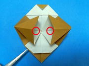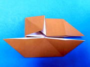 下の四角 上角を1/2 谷折りで 折り下げます ![]() |