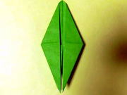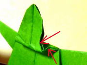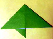 上の1枚 下角を 折り目から谷折りして 右の角を上方向に⇒ ![]() |