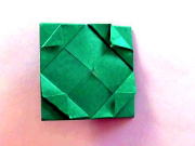 もう一度 谷折りで四隅の 角を 中心に合わせます ![]() |