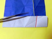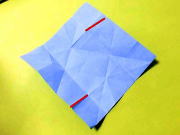 横中心線を山折して 下右側の斜め折り線を⇒ ![]() |