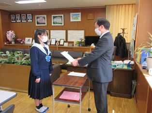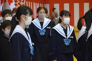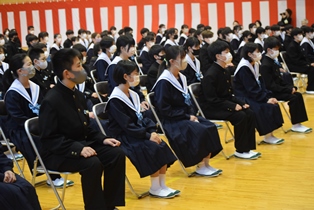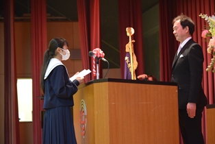 代表生徒が、立派に「新入生誓いの言葉」を読み上げました。良い姿勢で式に参加することができ、頼もしい限りです。 |