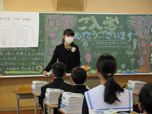 式の後は各教室で担任の先生からのお話と、たくさんの配付物などの説明が行われました。 |