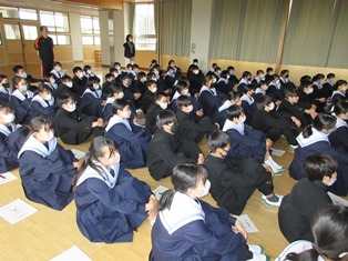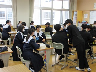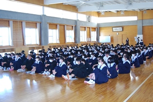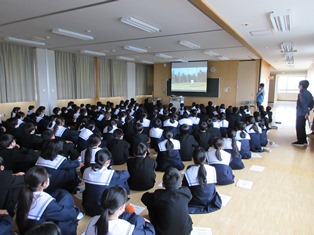 3年生は学年集会で、6月に予定している修学旅行に向けた今後の取り組みについて説明を受けました。