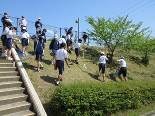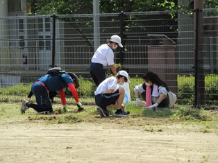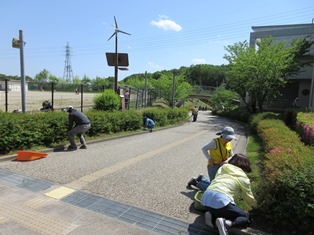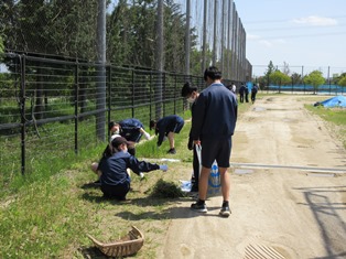 「地域連携美化活動」と題して、地域の方と生徒が協力して校内の除草作業を行いました。