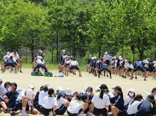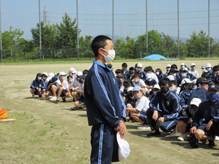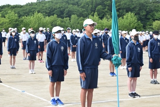 体育祭練習に参加する生徒の気持ちも高まっています。同じように気温も高まっているので、熱中症予防で水分補給などしっかりしたいです。寝不足なども影響するのでご家庭でも、健康管理をお願いします。 |
