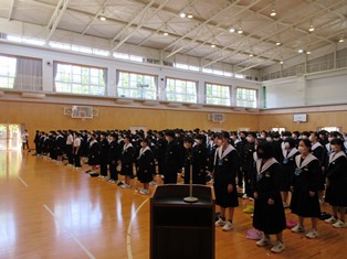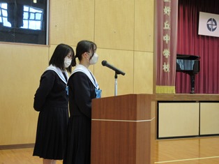 整然とした雰囲気で、校長先生の話を聞いたり、生徒会役員からの目標発表を聞きました。会の終わりには、全校生徒による校歌斉唱。コロナ禍によって失われていた、「学校の日常」がようやく戻ってきた気がしました。 |