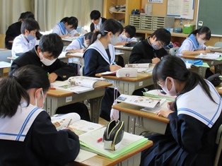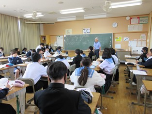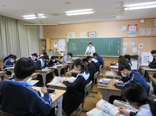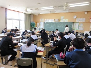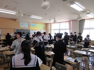 右は3年の英語科。話す相手を積極的に変えながら会話練習をしていました。 |