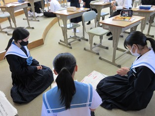 どの教科でもコの字の隊形をつくり、お互いの顔を見ながら、意見や発表を聞くことができます。