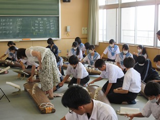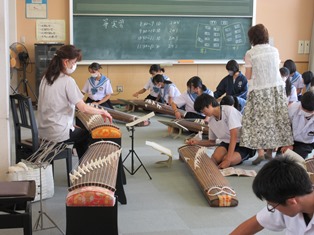 2年生は音楽科で琴の特別授業です。地域講師に依頼をして、2日間のプログラムで教えていただきました。