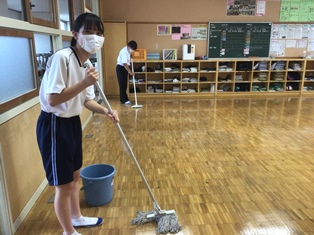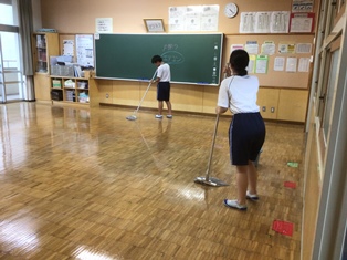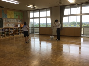 大掃除、そしてワックスがけです。大変きれいになりました。清掃委員さんありがとう! |