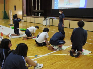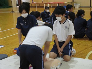 2年生は月曜日に1・2組、火曜日に3・4組が救急救命法講習を受けました。