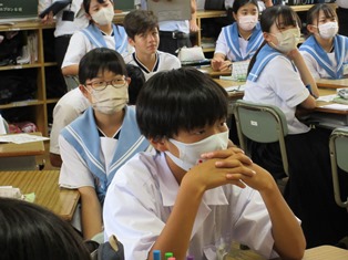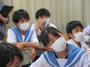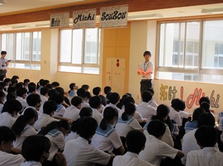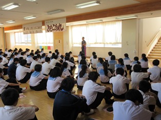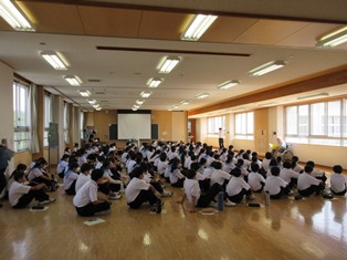 各学年、生徒指導担当教員から生活についての諸注意を聞いていました。話をする先生の方を見て、しっかり話を聴くことができています。 |