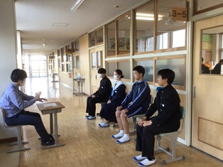 3年生は入試に向けて面接練習が始まっています。中学生らしい受け答え、堂々と自分の考えを語ることができるようこれから練習を進めていきます。 | ||