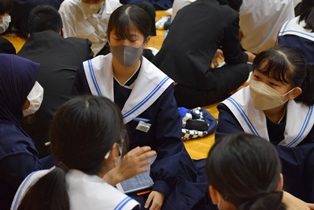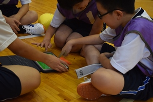 1年生の保健体育科の授業で研究授業を行いました。自分のチームの課題をいかにつかみ、勝つためのチームプレーを探究していくか。タブレットも効果的に使いながら話し合い、試合中のプレーで再現していました。 | ||
