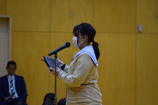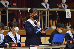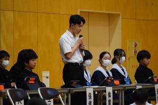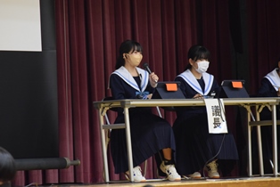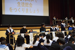 後期生徒総会が行われました。後期の活動案に対しては、たくさんの質問や意見が出されました。「自分たちの生徒会を自分たちでつくっていこう」という意欲が伝わる、素晴らしい会になりました。この総会を受けて、どんな活動が行われるか楽しみです。 | ||