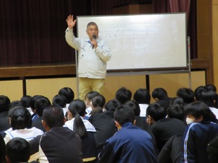 後期中間テスト最終日。テストが終わった4時間目に2年生が12月の職場体験学習に向けて「キャリア教育キャリア教育講演会」を実施しました。市内にある「原田車両設計」の原田様をお迎えして、「働くことについて大切なこと」をお聴きしました。ぜひご家庭でも、お子さんに「働くことの意義」など話題にしていただきたいと思います。 | ||