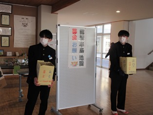 1年4組の生徒からの発案で、生徒会が「能登半島地震」の被災者にむけた義援金を集め始めました。