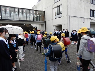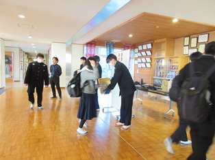 3年生にむけて、1年生からあたたかいエールが送られました。 |