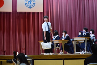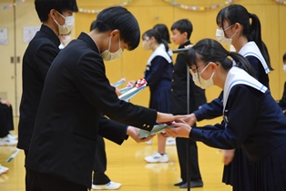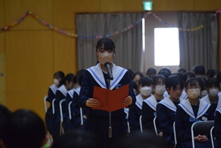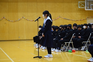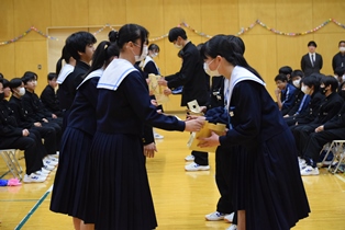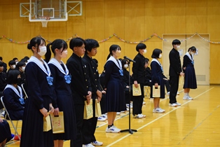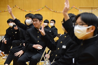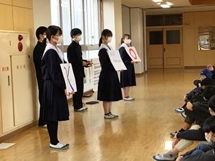 5,6時間目に「3年生を送る会」が開かれました。生徒会・実行委員を中心に、3年生に向けた想いを込めて、趣向を凝らした楽しい会になりました。きっと3年生にとって、記憶に残る1日になったのではないでしょうか。3年生の丘中に対する想いも、在校生は引き継いでいきたいですね。 | ||