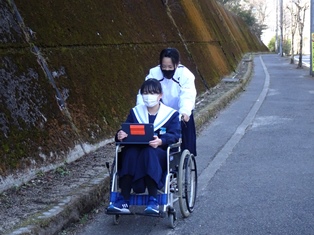 1年生の総合的な学習の時間。福祉学習で実地調査をしています。 | ||