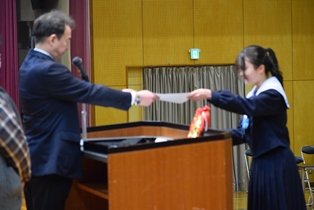 卒業式に先駆けて、令和5年度の学校賞授与式が行われました。善行賞である「丘中大賞」や「体育賞」「文化賞」「精勤賞」の表彰をし、皆のがんばりを讃え合いました。 |