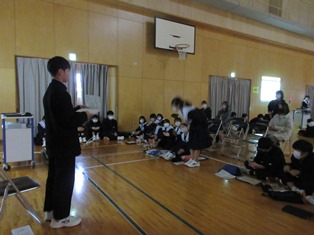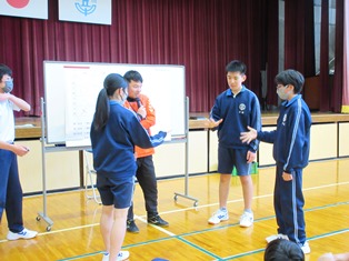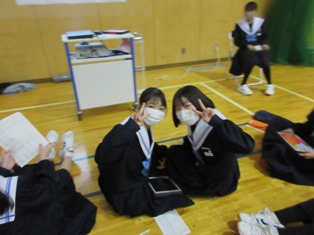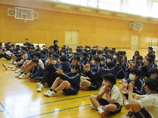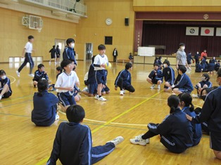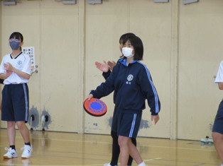 1年生は学年レクリエーションでクラス対抗ドッジボール(ドッジビー)をしました。大変楽しそうな声が職員室まで響いてきました!いい思い出ができましたね。 |