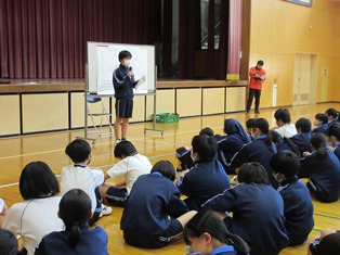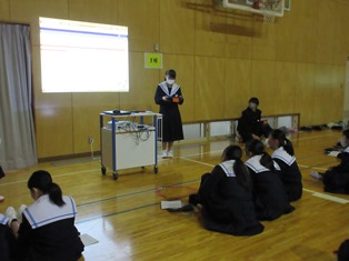1年生の「総合的な学習発表会」が開かれました。天候が悪く、駐車場等で大変ご迷惑をおかけしましたが、多くの保護者の皆様にご来校いただきました。生徒が1年間かけて学んだことを上手にまとめて発表していました。 |
